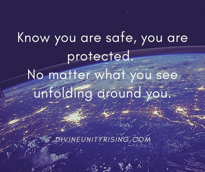 When I seek explanation of what it is we are shown, we are told we must not be in fear, despite what we may witness. We must know we are safe, we are protected. We would not have been sent to Earth at these times simply to be put in danger. There is a reason why each one of us in front of the screen is to be on Earth during those times. Each one has a mission, and each mission is important: rising your vibration, parenting a new generation of starseeds, anchoring the light, fighting for freedom and truth, and many more. It will be seen to that we are able to accomplish each of our missions. We will receive the guidance we need at the moment we need it. Who is meant to be on this path with us, either in person or in the distance, will be walking along with us. We have to trust our guidance. And know that we will be somehow protected, as long as we follow our inner guidance and knowing, for these are how our support team and Higher Selves communicate with us.
